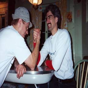 Dan and Matt decided to go swimming after the tug-of-war to cool off after such a grueling event.
