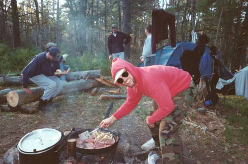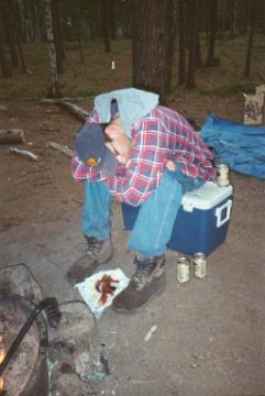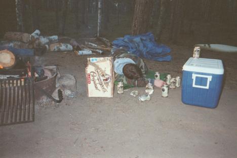 Kenny started drinking Todd D.’s beer because he was so tired and worn out. I guess we know who was doing all the paddling in Kenny and George’s canoe. Obviously this situation did not continue for long as Kenny just wore himself out and finished the beer. As Kenny fell asleep downwind from the fire and started snoring, Chris started to swat at flies he thought were bugs, but only the noise from Kenny.